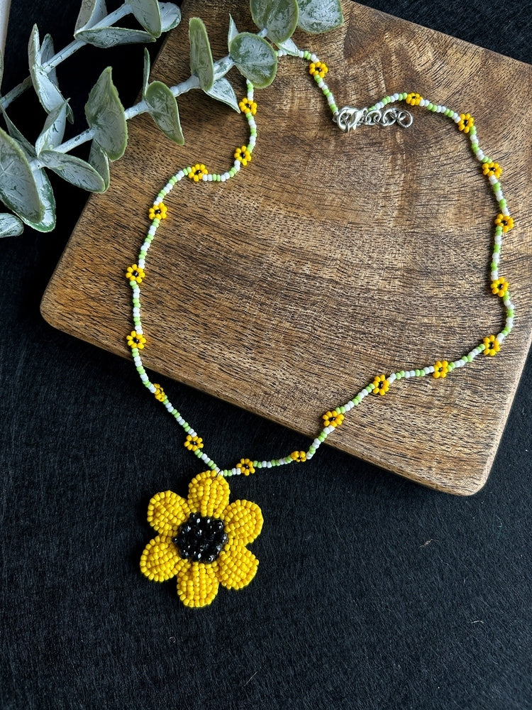 Spring Bloom Sunflower Handmade Beaded Necklace