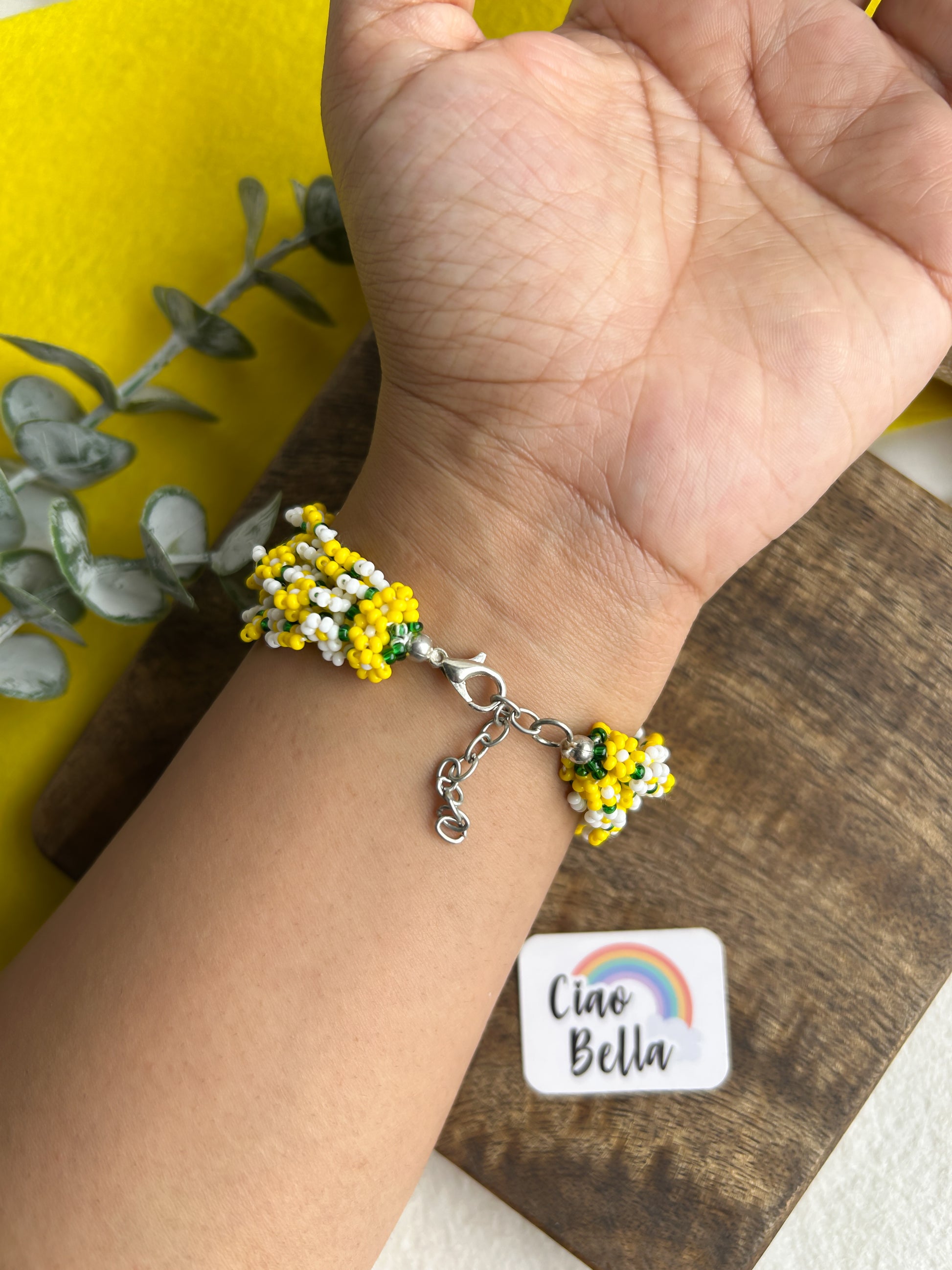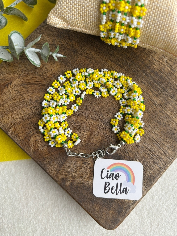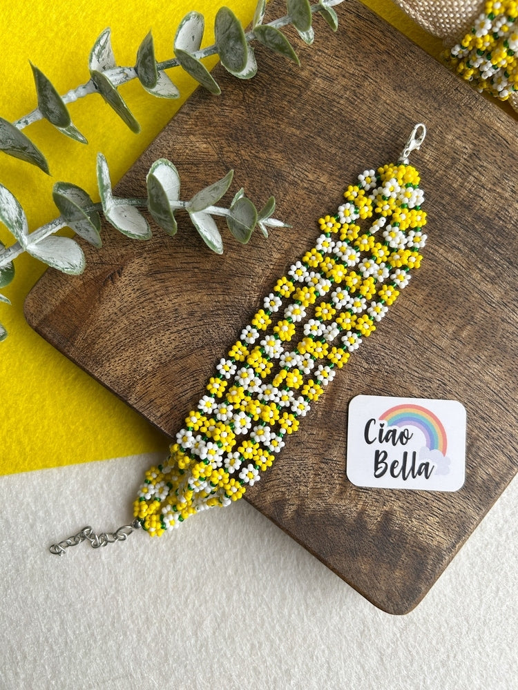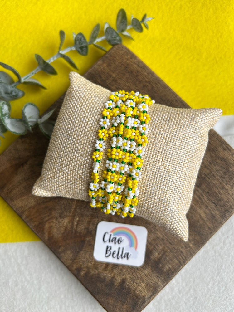 Spring Bloom Yellow White Daisy Handmade Beaded Bracelet
