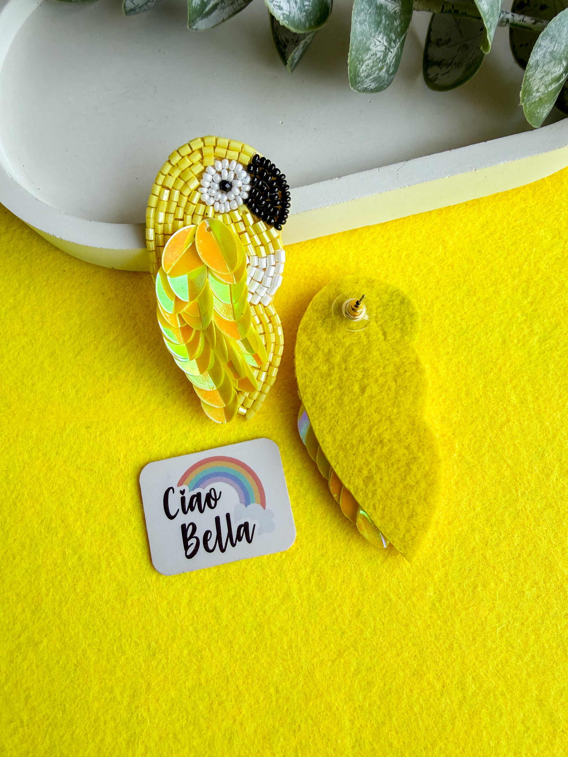 Sunny Yellow Parrot Handmade Beaded Bird Earrings