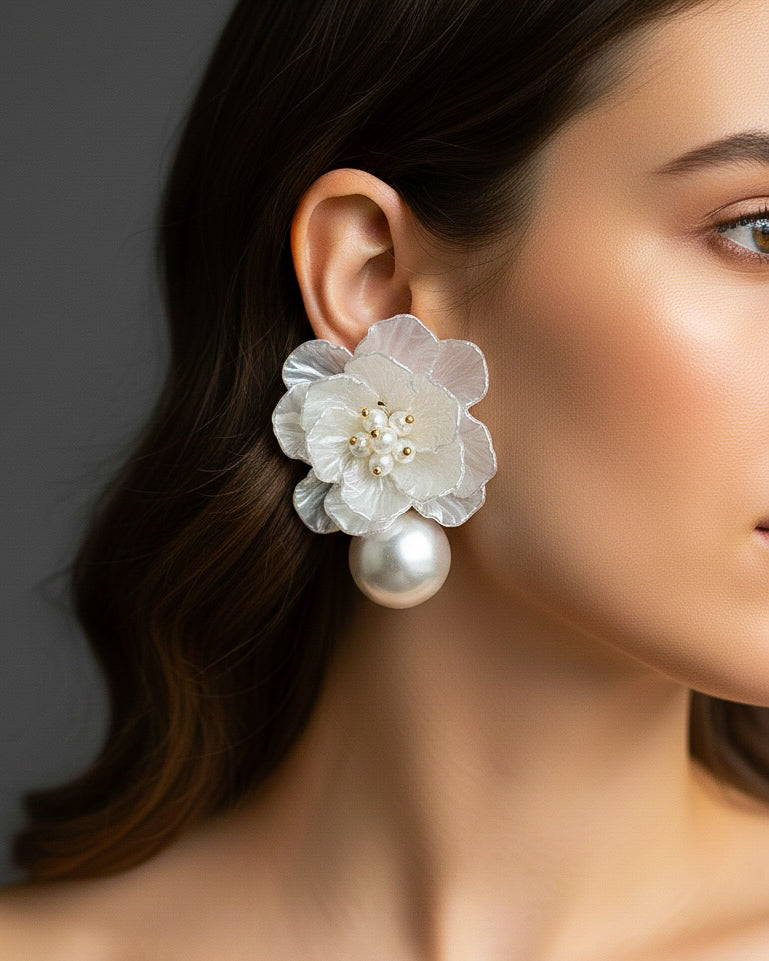Sweet Pearl Flower Beaded Pearl Drop Earrings