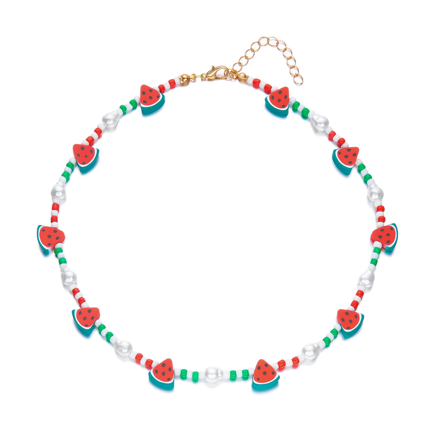 Sweet Watermelon Soft Clay Handmade Beaded Chain Necklace