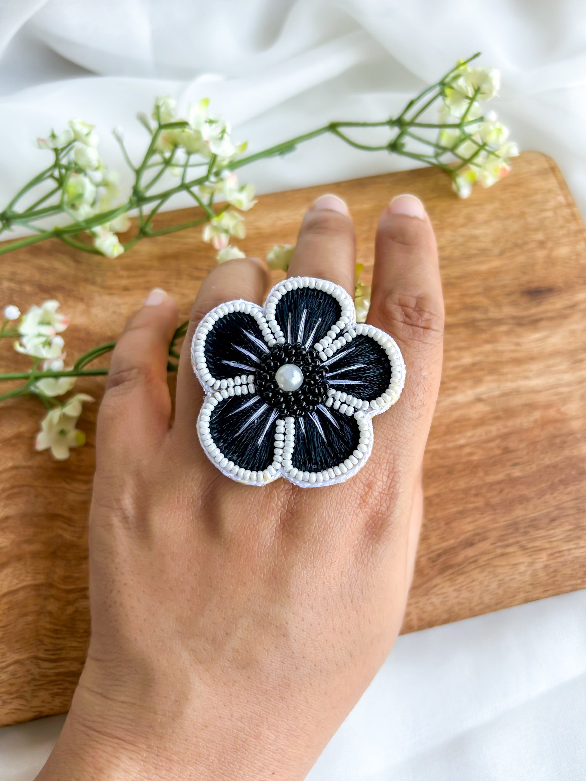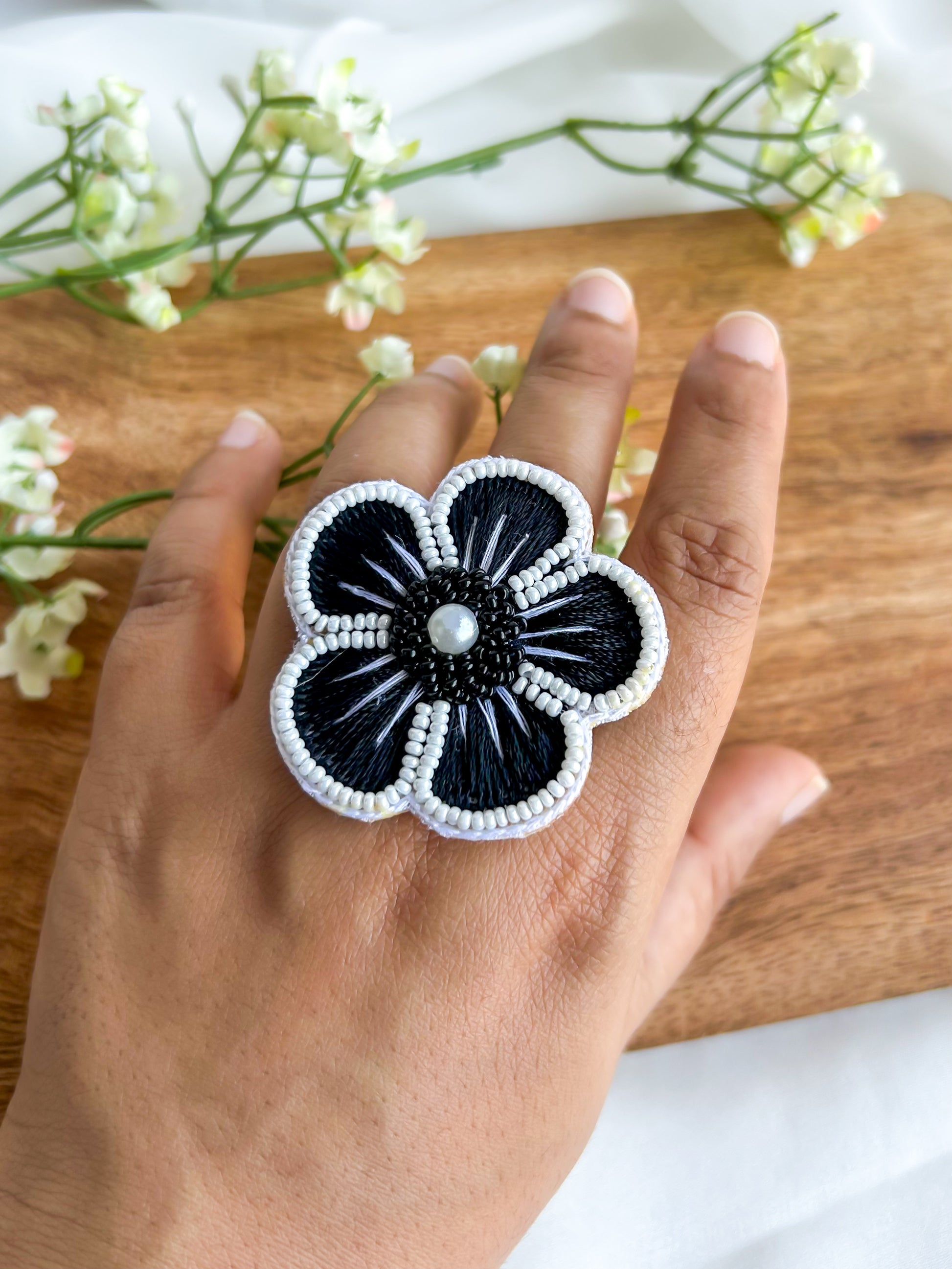 Twilight Blossom Handmade Beaded Ring
