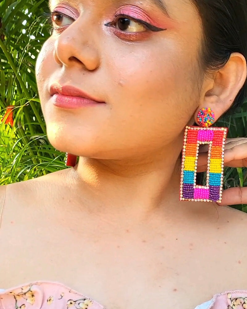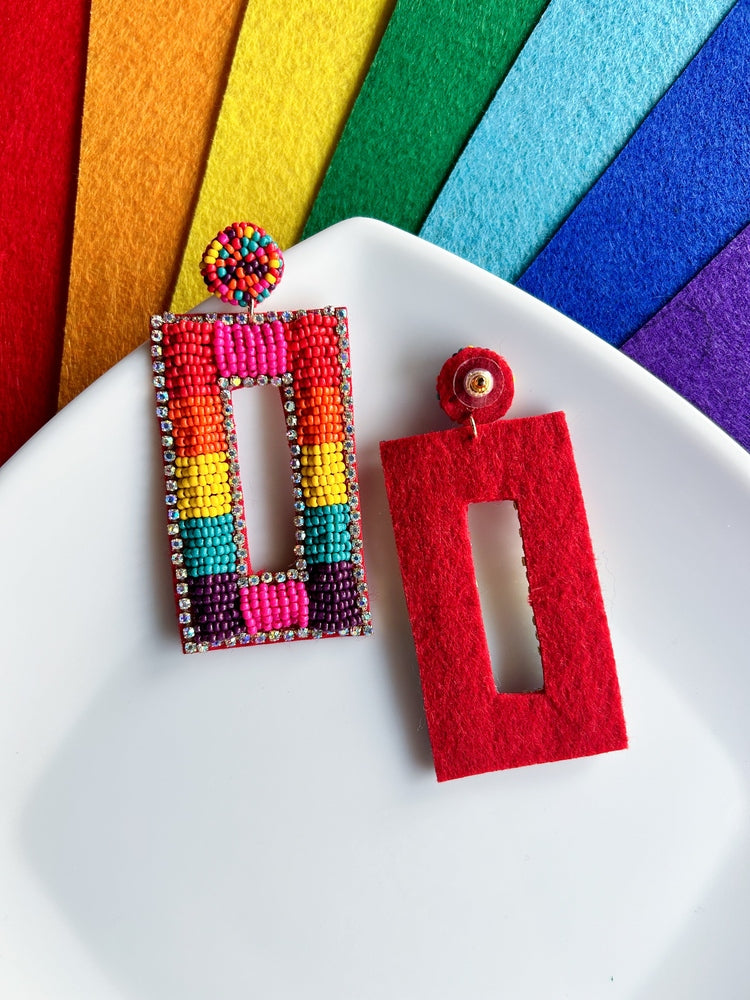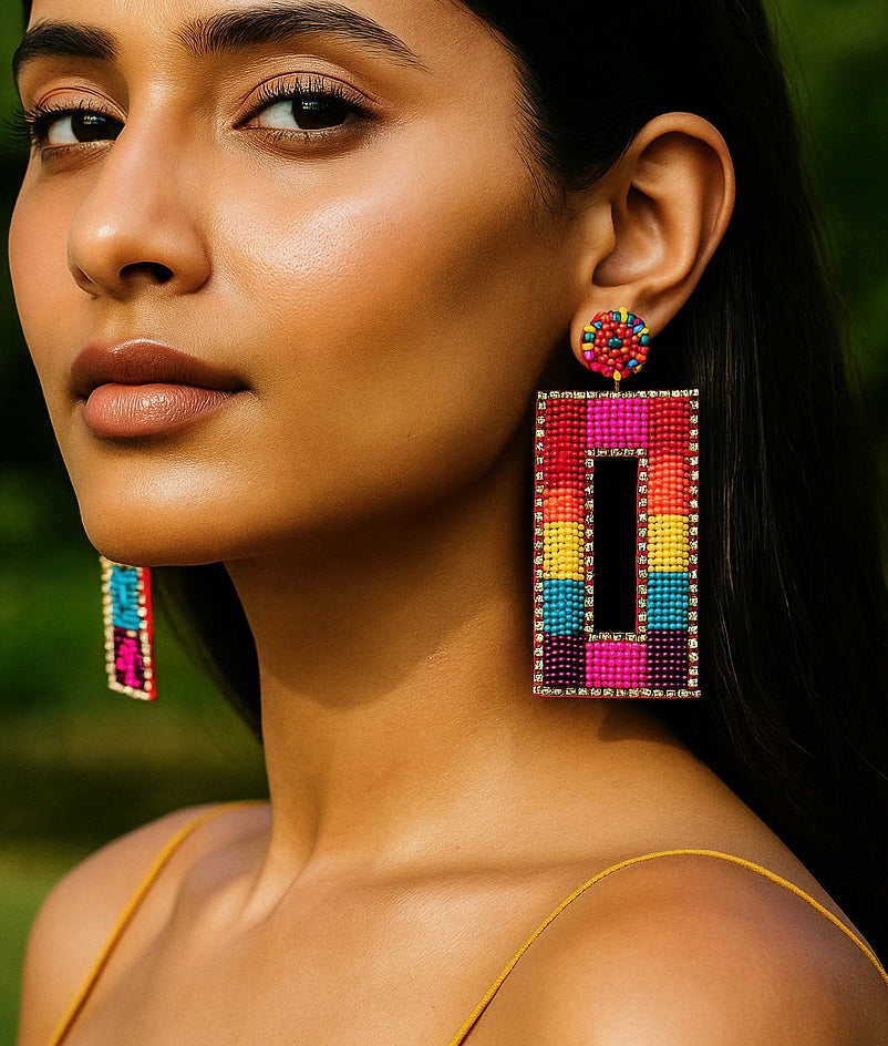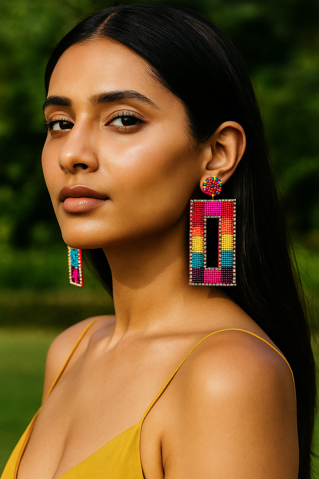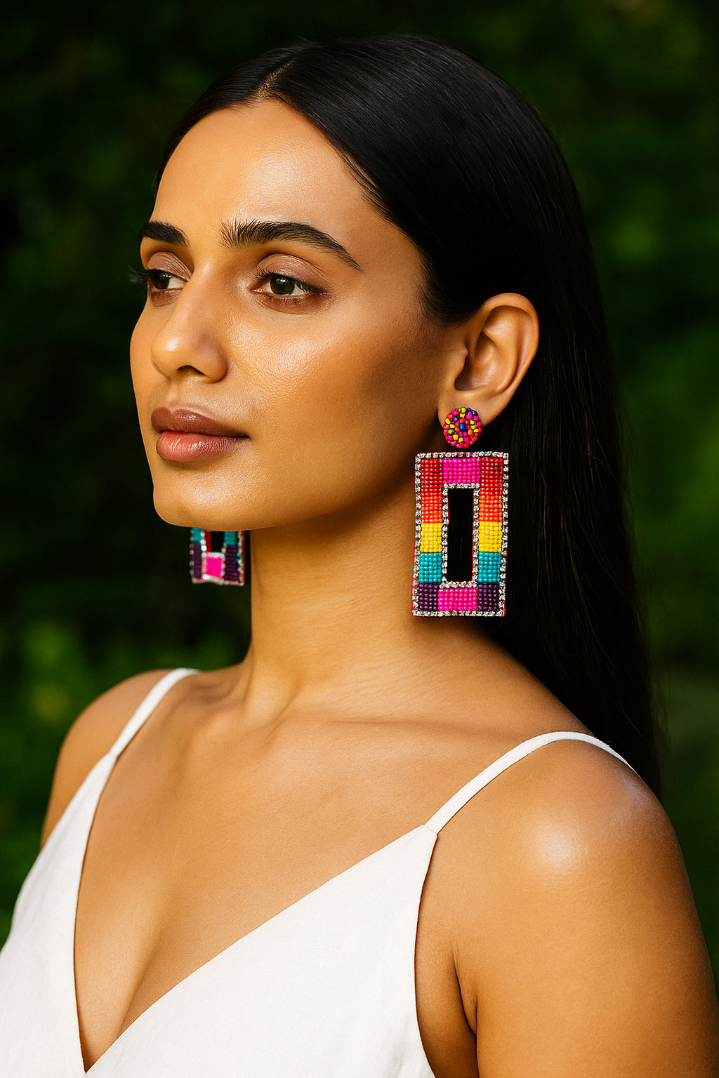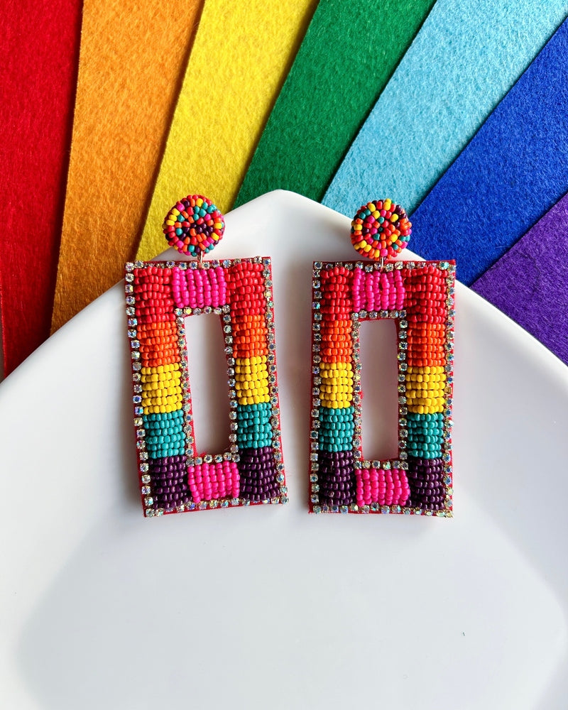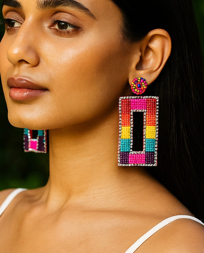 Vibrant Rainbow Drop Handmade Beaded Earrings